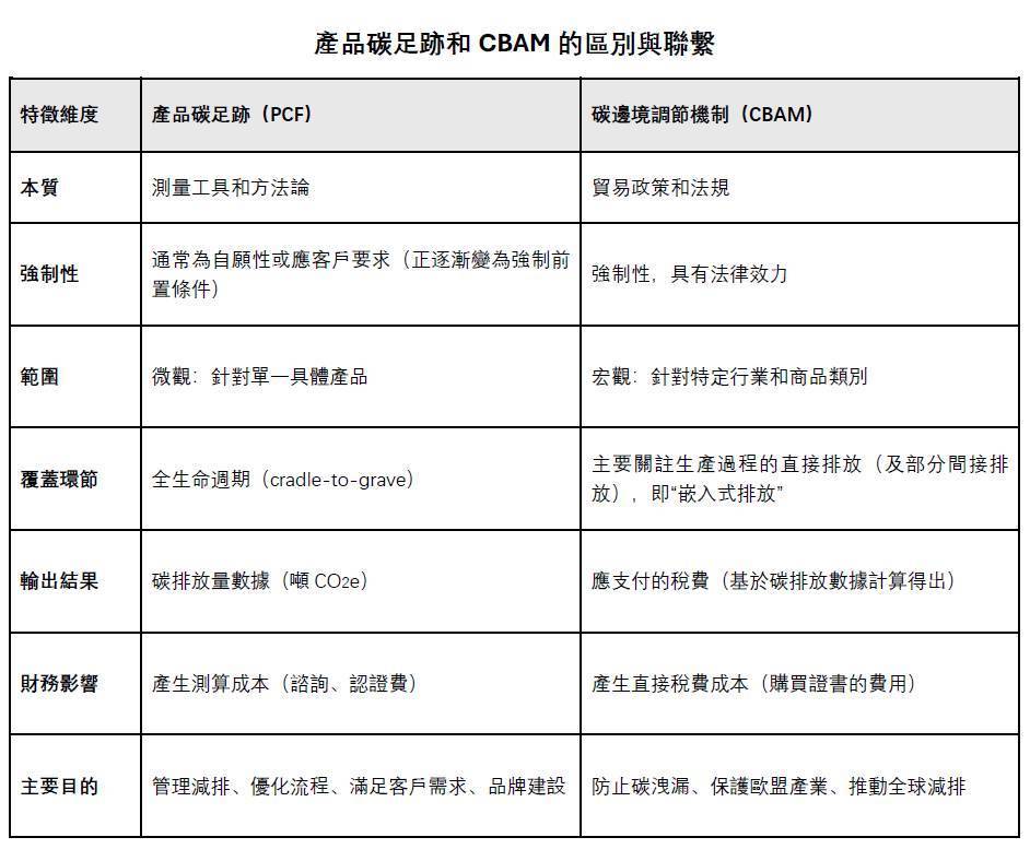 尤其是台灣企業認為有做媽碳足跡就可以閃過歐盟CBAM的限制,薛新祐特別將產品碳足跡(PCF)與碳邊境調節機制(CBAM)兩者內容整理出一個表,讓企業更清楚其中差異,以早日調整步調,避免掉單。