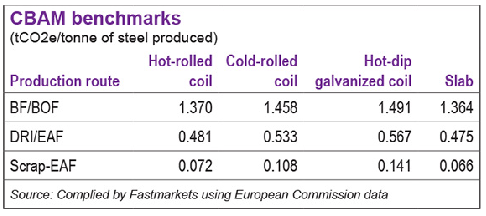 據了解,委員會此次採用的方法為,鋼鐵產品的基準值將依生產路徑區分,包括高爐—轉爐(BF/BOF)、直接還原鐵/電弧爐(DRI/EAF)及以廢鋼為基礎的電弧爐(Scrap-based EAF)。