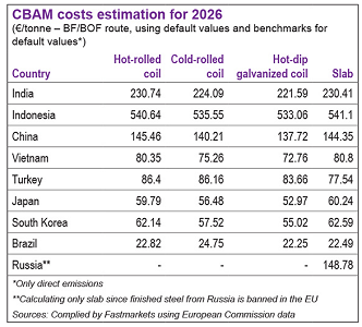 相較之下,巴西的預設值僅小幅上調,被視為在CBAM制度下仍具可管理性;而印尼與印度的預設值則被確認處於極高水準。市場人士指出,近期仍有大量印度與印尼熱軋鋼捲銷往歐洲,但在CBAM新規下,其成本結構恐面臨重大挑戰。