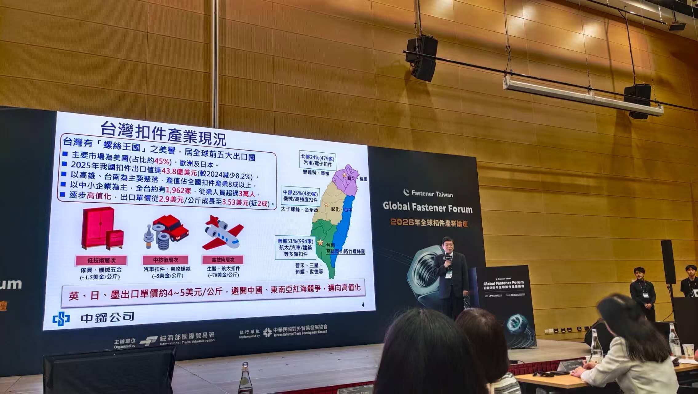 在「2026年全球扣件產業論壇(Global Fastener Forum)」中,中鋼公司展示低碳鋼材開發與減碳路徑規劃,從材料設計、製程優化到再生鋼材應用,全面對應國際減碳趨勢與歐盟CBAM機制,為扣件產業提供具體減碳解方,並釋出未來低碳鋼需求將大幅成長的訊號。