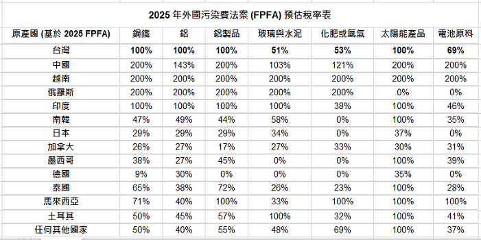 其中,鋼鐵產業因碳排強度高、貿易量大,將成為首波衝擊焦點。若FPFA與既有232條款或未來對等關稅政策疊加,實質出口成本恐進一步墊高。