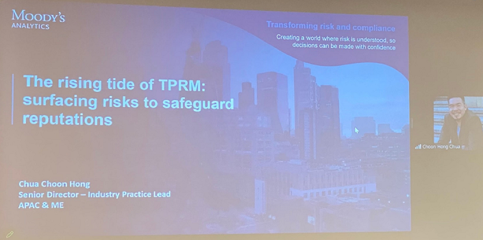 在台北場中,Moode's亞太區總監蔡俊鴻總針對企業應如何解決全球貿易碳限制問題,及供應鏈的ESG評比及財務的健全了解提出因應對策。